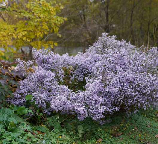 「高さ60-90cm」「開花7-10月」 薄紫の小花がたくさん咲く。遠目に見ると青い雲のように見える。