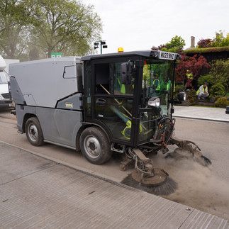 最後は養生のためのアルミ板が外され掃除作業が急ピッチで行われています。