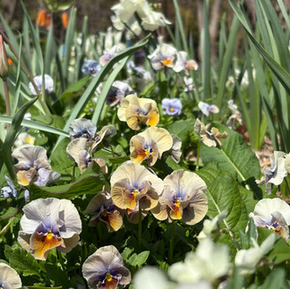 左上から「原種系チューリップ ヒルデ」「ビオララブラドリカ」「原種系チューリップヒルデ 朝の様子」